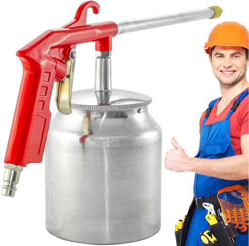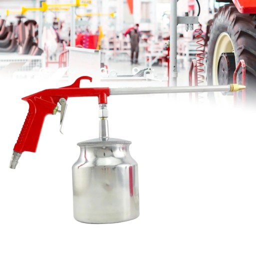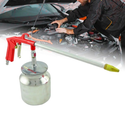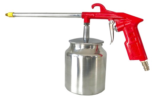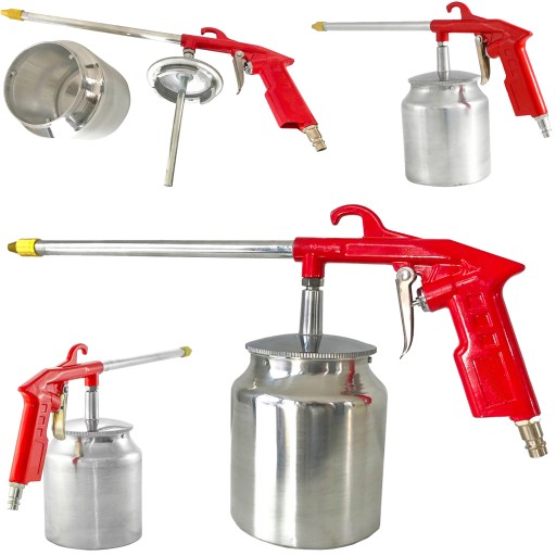 Pistolet do mycia służy do oczyszczania za pomocą strumienia sprężonego powietrza i substancji czyszczącej. Dzięki wyposażeniu w zbiornik oraz długą dyszę, pistolet pozwala na czyszczenie nawet w trudno dostępnych miejscach.