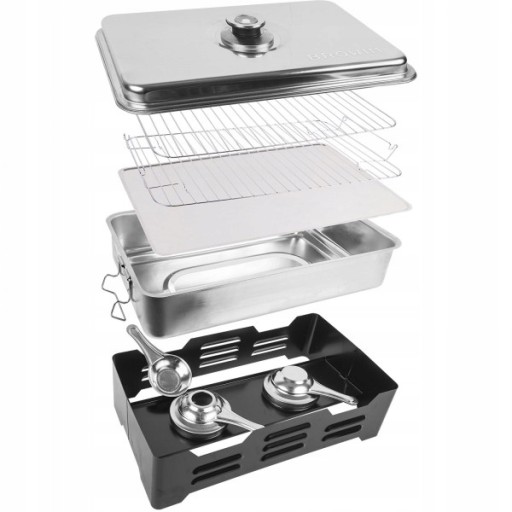 ?Porcja dla każdego - uniwersalna domowa wędzarnia pozwoli Ci na przygotowanie pysznych wędzonych ryb, mięs, serów i wędlin nawet na niewielkim balkonie. Dolny i górny ruszt oraz dwa palniki pozwolą Ci na urządzenie prawdziwej świątecznej uczty!
