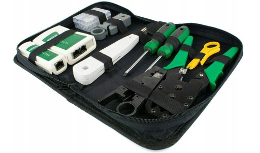 do konserwacji sieci zapakowany w poręczne etui. Organizer posiada specjalne, profilowane gumki, dzięki którym każde narzędzie ma swoje miejsce i jest zawsze "pod ręką". Zestaw umożliwia zdiagnozowanie oraz usunięcie wszelkich usterek przewodów sieciowych, zwarć, błędów czy też ich przerwanej ciągłości.
