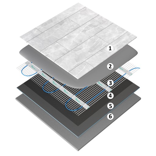 Matę układamy bezpośrednio w warstwie zaprawy klejowej lub w wylewce betonowej. Mata posiada siatkę, którą można dowolnie nacinać, uzyskując żądany kształt powierzchni. Mata jest bardzo cienka (ok. 3,5 mm) co pozwala na instalację ogrzewania bez konieczności podnoszenia podłogi. Maty można łączyć ze sobą, natomiast pod żadnym pozorem nie można ich skracać. Posiadamy w ofercie maty różnych długości.