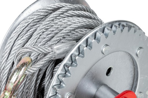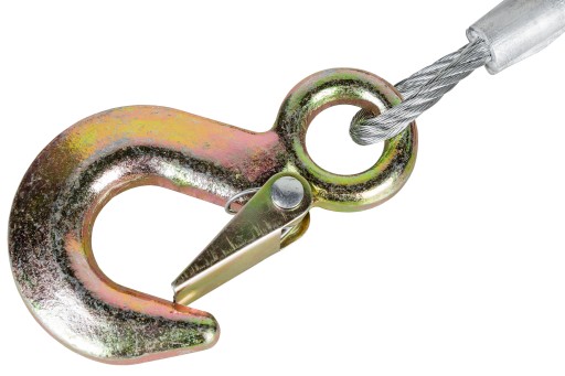 W wyciągarce zastosowano mocną i wytrzymałą linę stalową o długości 10 m, zakończoną solidnym hakiem z zabezpieczeniem przeciwko przypadkowemu wypięciu się obciążenia.