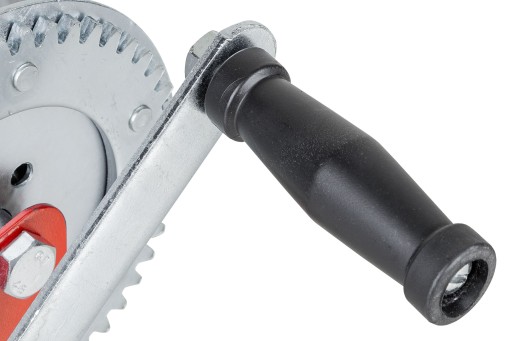 Bezpieczeństwo podczas pracy zapewnia solidny mechanizm zapadkowy oraz pogrubione, wzmocnione koło zębate. Takie rozwiązanie gwarantuje dużą sztywność całości, a także wysoką niezawodność konstrukcji. Dzięki zastosowaniu ruchomej, dwustronnej zapadki bez problemu możemy zarówno wciągać przy pomocy mechanizmu, jak również przy jego pomocy opuszczać stopniowo po jednym zębie zębatki. Dodatkowo można ustawić przełącznik w pozycji odblokowanej, przez co użytkownik może swobodnie manewrować liną. Sprawia to, że praca jest komfortowa, efektywna i bezpieczna.