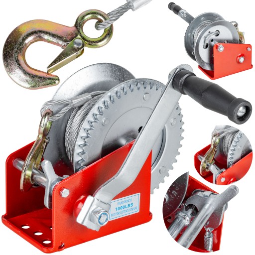 NOWA MOCNA I WYTRZYMAŁA WCIĄGARKA / WYCIĄGARKA RĘCZNA KORBOWA FIRMY LEX -UDŹWIG DO 454KG, STALOWA LINA, MECHANIZM ZAPADKOWY ORAZ HAK Z BLOKADĄ BEZPIECZEŃSTWA!