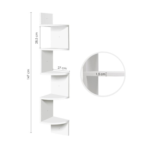 PÓŁKA ŚCIENNA NAROŻNA REGAŁ WISZĄCA BIAŁA 5 PÓŁEK