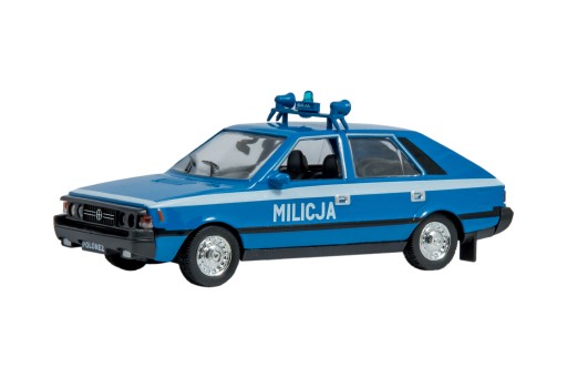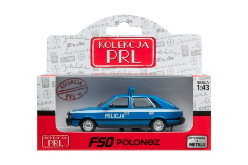 Idealnie odwzorowany model Polonez w wersji Milicja w skali 1:43. Wyprodukowany na licencji FSO. Karoseria jest wykonana z metalu, posiada elementy plastikowe i gumowe koła. Model w estetycznym, kartonowym opakowaniu typu window box, świetnie prezentującym się na półce każdego miłośnika modeli samochodów.