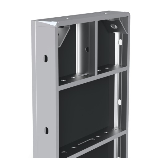 Rama każdej z aluminiowych płyt posiada mocny profil o grubości 12cm. Dodatkowo, płyty wyposażone są w gniazda przelotowe na ściągi wzmocnione aluminiowym pierścieniem, który chroni sklejkę przy montażu i demontażu szalunku.