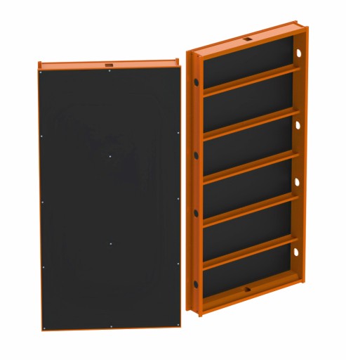 Panele wykonane zostały z lekkiego, a jednocześnie wytrzymałego stopu aluminium. Dzięki temu szalunek można montować ręcznie do wysokości 3,5m. Całość pomalowana jest proszkowo, co ogranicza przywieranie betonu i ułatwia czyszczenie.