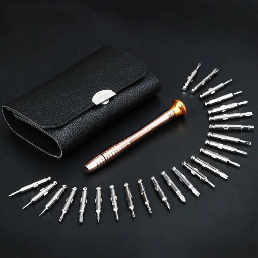Naprawa nowoczesnych urządzeń elektronicznych wymaga nie tylko umiejętności, ale również wykorzystania odpowiedniego, precyzyjnego sprzętu. Producenci stosują różnego rodzaju zabezpieczenia, co sprawia, że do ich otwarcia wymagane są dodatkowe końcówki, które trudno znaleźć w podstawowych zestawach wkrętaków. Zestaw specjalistycznych wkrętaków to 25 elementów znajdujących się w etui zamykanym na magnes. Każdy element posiada swoje własne miejsce, co pozwala na zachowanie porządku oraz sprawną organizację miejsca pracy, a tym samym jej szybkie i dokładne wykonanie. Komplet przeznaczony jest zarówno do napraw telefonów, smartfonów i tabletów jak również wszystkich innych urządzeń i sprzętów, które posiadają niestandardowe, drobne śruby.