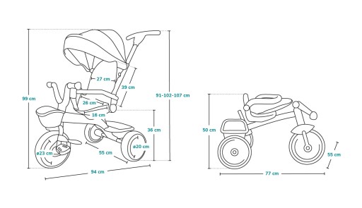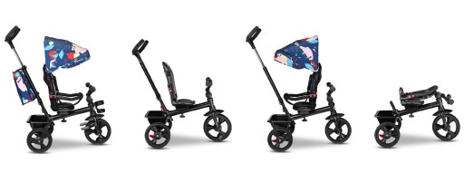 ✔ Pchacz – dla najmłodszych dzieci. Wolne koło umożliwia kontrolowanie trasy przez rodziców za pomocą regulowanej rączki. Obrotowe siedzisko pozwala na to, by dziecko zwrócone było również przodem do rodzica, mogąc mieć z nim ciągły kontakt.