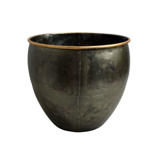 Metalowa postarzana osłonka z widocznymi łączeniami.