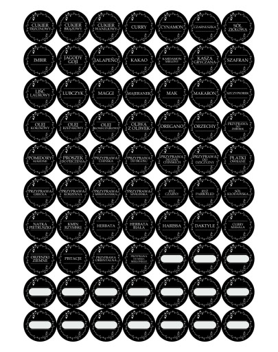 Zestaw okrągłe etykiety, naklejki na pojemniki, słoiczki z przyprawami od polskiego producenta