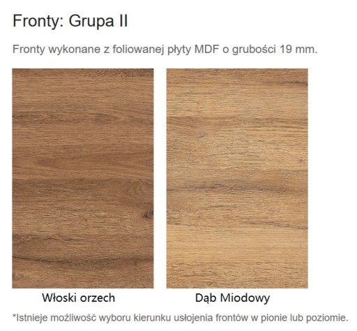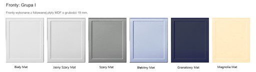 Fronty wykonane z foliowanej płyty MDF o grubości 19 mm.