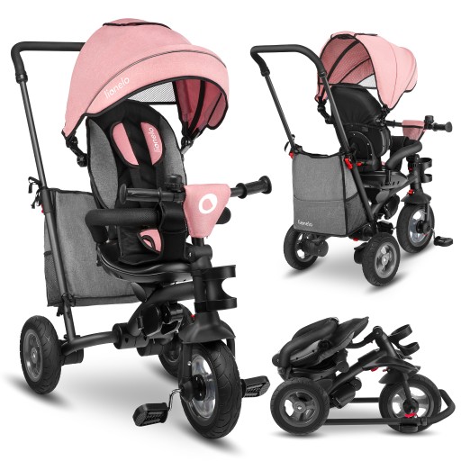 ДЕТСКИЙ ТРЕХКОЛЕСНЫЙ ДВИГАТЕЛЬ 2-в-1, ПОВОРОТНЫЙ НА 360°, С КОЗЫРЕКОМ LIONELO TRIS