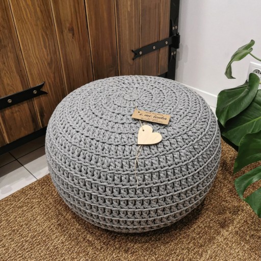 Ręcznie wykonany puf z grubego sznurka bawełnianego o średnicy 5mm.