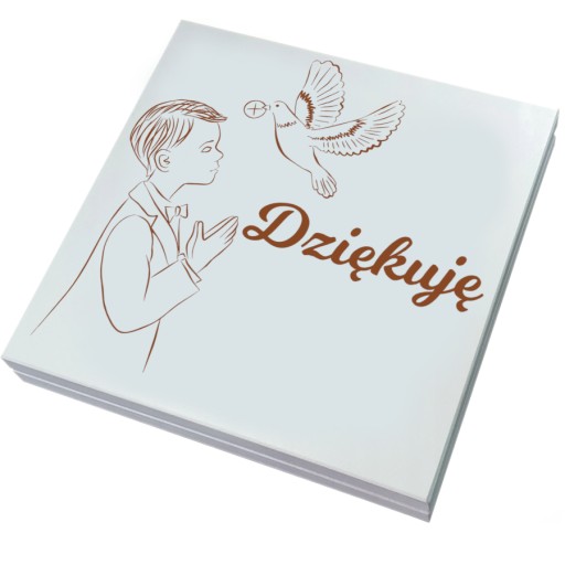 - W środku tekst z podziękowaniem dla wybranej osoby, drukowany na papierze o wysokiej gramaturze ( nie zapomnij podać dla kogo)