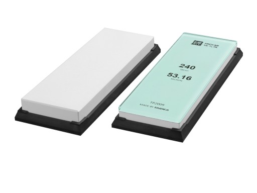 W kamieniach Taida Glass do podstawy wykonanej z hartowanego szkła przytwierdzono biały korund, który jest jednym z najtwardszych minerałów na świecie. Tego typu ostrzałka ściera się dużo wolniej niż tradycyjne kamienie wodne, nie trzeba jej moczyć w wodzie przed użyciem (wystarczy spryskać ją wodą) i co najważniejsze, można wykorzystać ostrzałkę do końca, bo szkło zapobiega pęknięciu kamienia nawet, gdy materiału ściernego zostanie parę milimetrów.