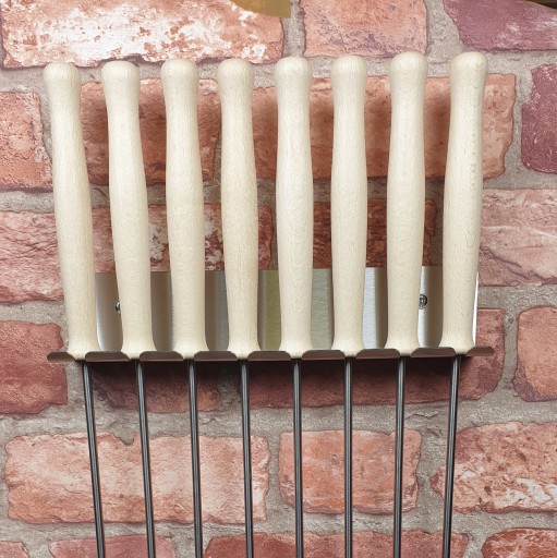 Aukcja dotyczy kompletu - 8 sztuk widełek nierdzewnych WO-5/115 o długości 115cm oraz wieszaka WN-8 z blachy nierdzewnej