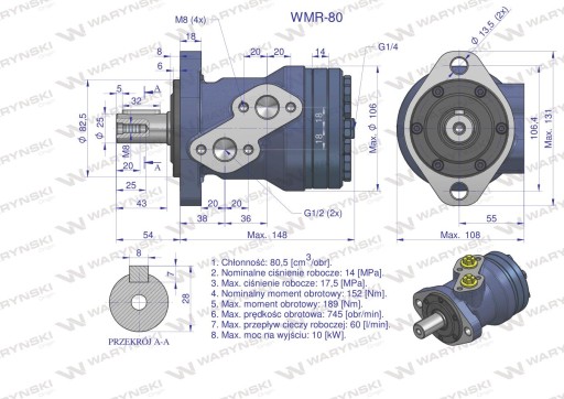 Silnik hydrauliczny orbitalny 80 cm3/obr (140 bar / max.200 bar) WARYŃSKI
