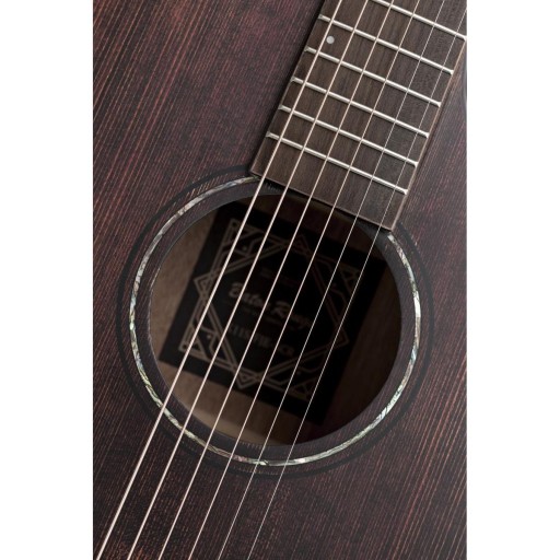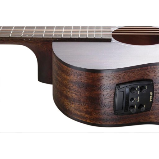 BATON ROUGE X11S/FJE-SCR - to mega przepiękna gitara elektroakustyczna z wyciętym korpusem typu FJ. Wierzchnia płyta wykonana jest z litego świerku, tył i boki z mahoniu. Gryf wykonany z mahoniu, podstrunnica i sam mostek z Ovankolu. Gitara posiada 21 progów, a siodełko (46 mm) i mostek wykonane są z kości.