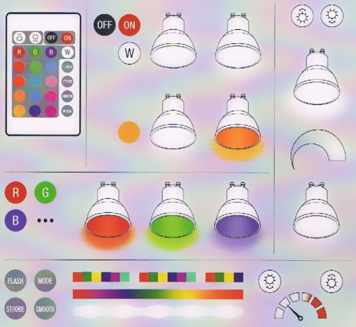 - Cztery efekty dynamiczne: błyski, stroboskop, płynne przejścia i nastrój