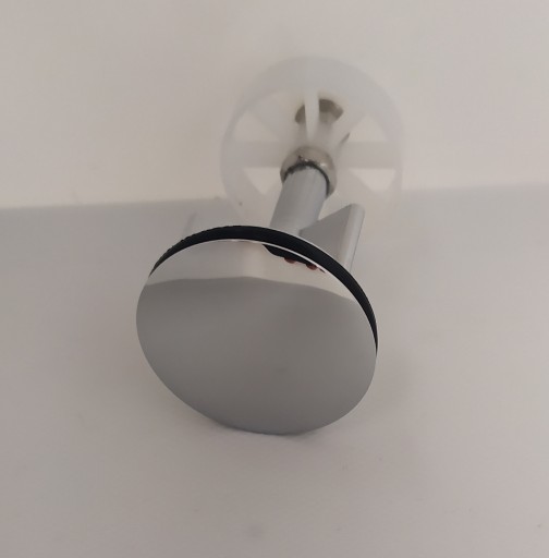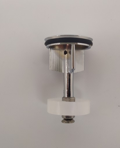 Metalowy ,regulowany korek/zatyczka do umywalek posiadający "sitko" w dolnej części, które ma na celu zatrzymanie większych odpadków aby nie dostały się do syfonu