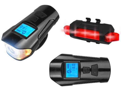 LAMPKA ROWEROWA LED LICZNIK KM KLAKSON + TYLNA