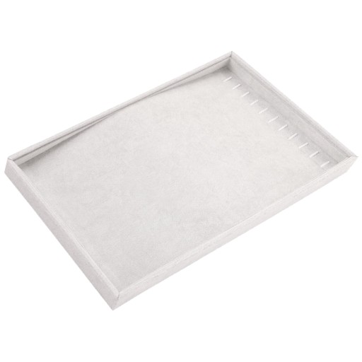 Opis: Ekspozytor na łańcuszki w formie tacki. Pokryty eleganckim i miękkim aksamitem w kolorze szarym.