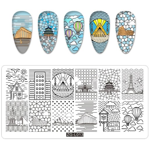 ПРАЗДНИЧНАЯ тарелка Штамповая пластина для украшения ногтей ЗДАНИЯ ПАМЯТНИКИ