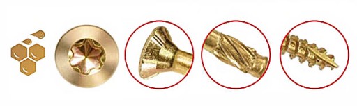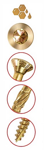 - Karby tnące - specjalne karby tnące na gwincie przecinają włókna struktury drewna podczas wkręcania,