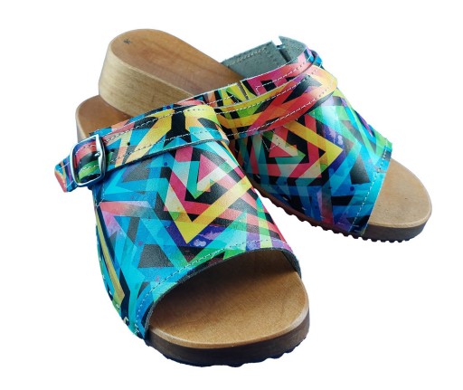 Drewniaki wykonane są z wysokogatunkowej skóry naturalnej z pięknym motywem kwiatowym. Drewniaki posiadają ozdobną klamerkę, i podeszwę z drewna olchowego, która ma właściwości zdrowotne.