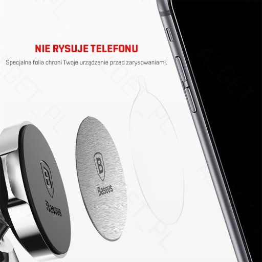 Producent Baseus Nazwa Magnet Iron Suit Kod produktu ACDR-A0S Materiał Aluminium Przeznaczenie Płytka do montażu telefonu na uchwycie magnetycznym Kolor Srebrny, czarny