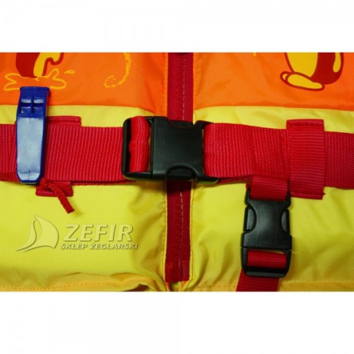 Zaprojektowana specjalnie dla dzieci. Dla zwiększenia bezpieczeństwa zastosowano pas krokowy, (uniemożliwiający wypadnięcie dziecka dołem kamizelki), zamknięcia na zamek błyskawiczny oraz klamrę. Jest wygodna i lekka, pokryta wytrzymałym nylonem. Posiada powłoki odblaskowe SOLAS oraz niezatykający się gwizdek do wzywania pomocy. Wysoka jakość wykonania. Przeznaczona do stosowania na wodach śródlądowych i przybrzeżnych.