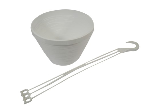 Przedmiotem oferty jest plastikowa doniczka wisząca w kolorze białym. Idealnie będzie pasować na balkon do zawieszenia latem przepięknych, zwisających kwiatów.