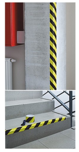 Taśma idealnie naddaje się do wyznaczania ciągów komunikacyjnych, odznaczania stref, oznaczania zakończeń ramp, zaznaczania wystających elementów konstrukcji , maszyn itp.