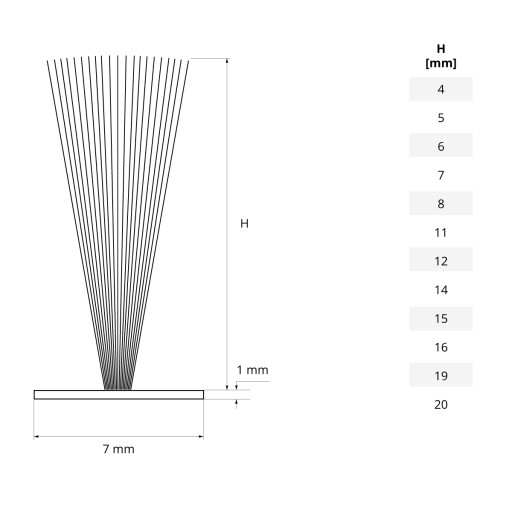 Aukcja „kup teraz” dotyczy 15 m uszczelki szczotkowej o wysokości włosia 7mm/8mm, szerokości podstawy 7mm w kolorze czarnym. Na innych naszych aukcjach możesz kupić uszczelki szczotkowe w innych kolorach oraz o innej grubości i długości.