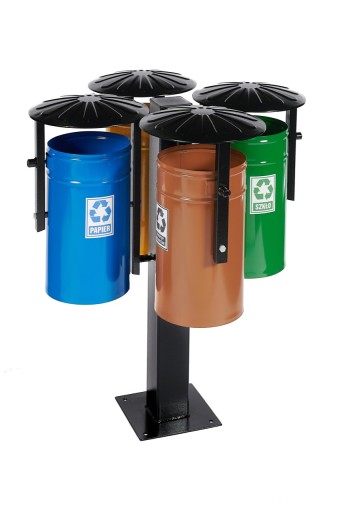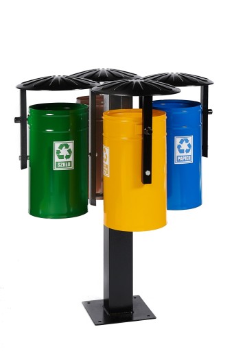 Kosz do segregacji śmieci typu Z-O1 o pojemności 4 x 35 litrów.