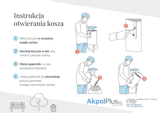 Firma AKPOL PLUS s.c Karol Andrzejewski, Norbert Andrzejewski to znany i ceniony producent koszy oraz malej architektury miejskiej, którego produkty znaleźć możemy na terenie całego kraju. Wieloletnie doświadczenie i współpraca z Zakładami Gospodarki Komunalnej sprawiają, że kosze na śmieci jakie oferujemy, cechują się doskonałą jakością oraz funkcjonalnością. Kosze te wykonywane są z najwyższej jakości materiałów, dzięki czemu nie tylko są estetyczne, ale również trwałe i niezawodne, co gwarantuje długi okres ich eksploatacji.