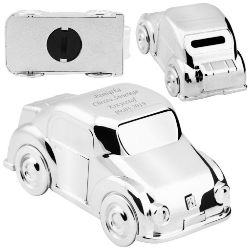 Posrebrzana Skarbonka Auto na Chrzest Roczek