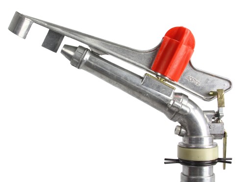 Solidna konstrukcja wykonana z aluminium oraz metalu gwarantuje niezawodną pracę. Zraszacz wyposażony jest w przyłącze 52 mm (2”).