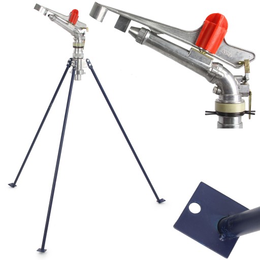 Zraszacz młotkowy na składanym trójnożnym statywie.