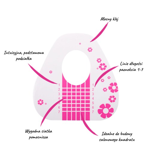 ✨ Każdy rodzaj naszych form idealnie przylega do paznokcia, dzięki czemu pozbędziesz się problemu 'podlewania' żelu pod paznokieć co często prowadzi do nadłamań. Idealnie dobrany, mocny klej zapobiega rozklejaniu, ale nie powoduje podrażnień, przez co może być wykorzystany nawet do bardzo wrażliwych dłoni.