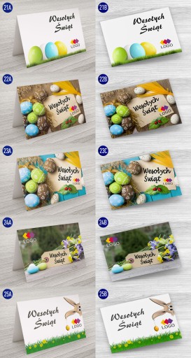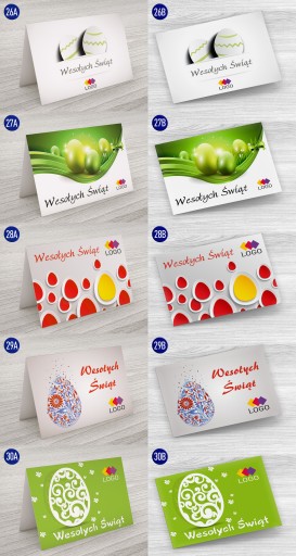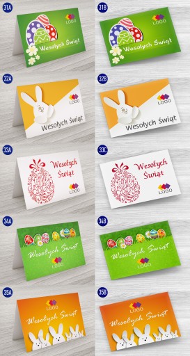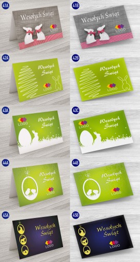 Kartki świąteczne dla firm, biznesowe, z kolekcji standard. Kartki biznesowe drukujemy tylko na podstawie naszych szablonów graficznych dostępnych poniżej na wizualizacjach. Na szablonie graficznym umieszczamy Państwa logo lub nazwę firmy oraz treść życzeń. Możemy również umieścić skan podpisu, np. prezesa lub właściciela.