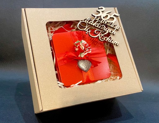- opakowanie w postaci ekologicznego pudełka z okienkiem z napisem 365 powodów dla których Cię Kocha.
