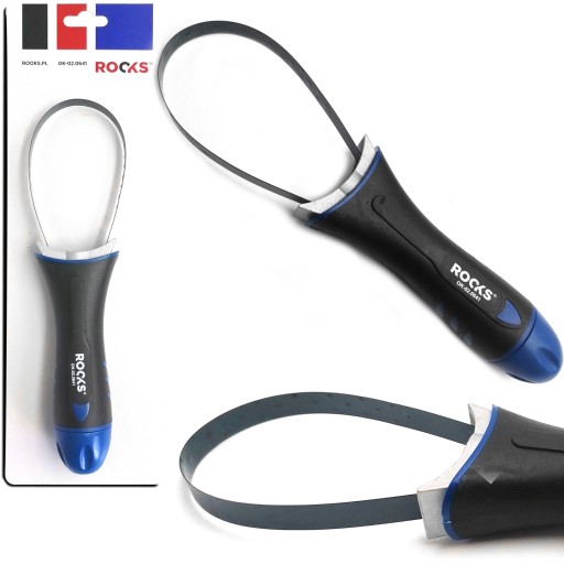 Klucz taśmowy do filtrów oleju posiada mocną taśmę ze sprężystej stali SK7 o grubości 0,5 mm ze specjalnymi strefami zwiększającymi tarcie.