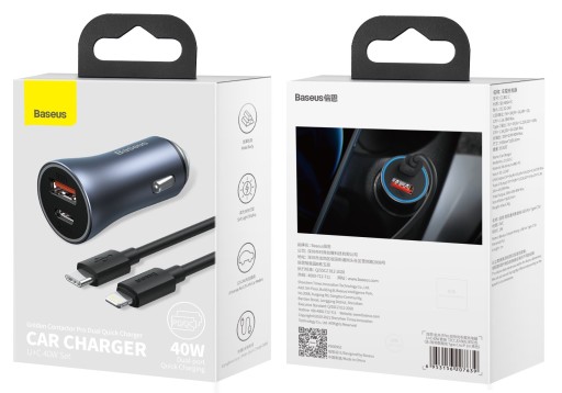 - Model: Golden Contactor Pro Dual Quick Charger Car Charger U+C 40W (With Baseus Simple Winsdom Data Cable Type-C to iP 1m)
