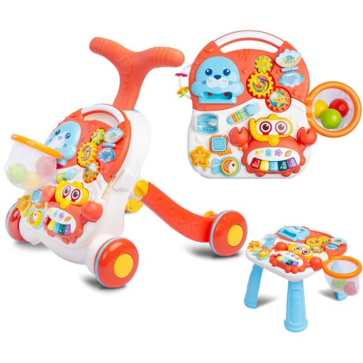 • 2 w 1 – pchacz i stoliczek do zabawy