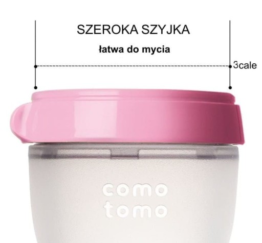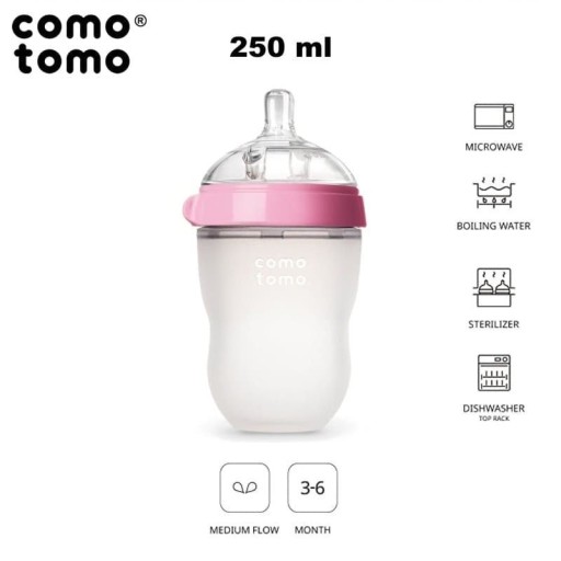 Przeanalizowano opinie ponad 1000 Mam, a prawie połowa odpowiedziała, że „zamiana sutka z Maminego na sztuczny [butelkowy]” to bardzo duży problem przy przechodzeniu na karmienie butelką, związany z dużym stresem dla całej rodziny a nierzadko zakończony odrzuceniem butelki. Dlatego wszystkie antykolkowe butelki silikonowe MOM'S BREAST COMOTOMO są zaprojektowane z szerokim i naturalnie ukształtowanym smoczkiem, naśladującym kształtem i zachowaniem Maminą pierś.