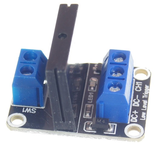 Działanie przekaźnika: Do wejścia DC+ podłączyć należy potencjał wysoki +5V natomiast do DC- potencjał masy GND. Aby przekaźnik wysterować należy wejście CH1 podłączyć do masy.