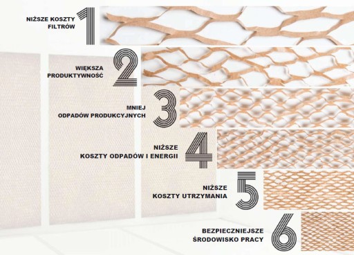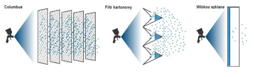 Duża skuteczność filtrowania wszystkich typów rozpylanych powłok, w tym również termoutwardzalnych