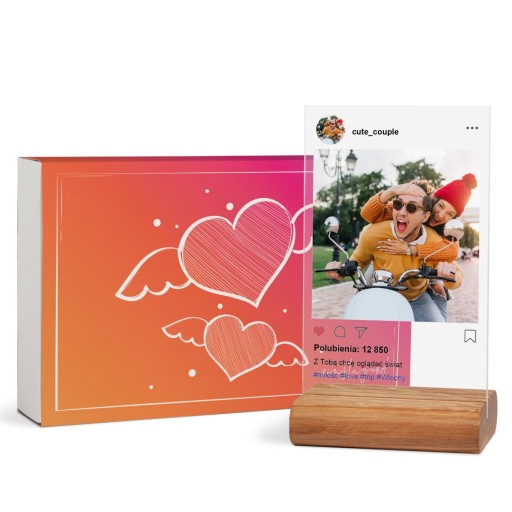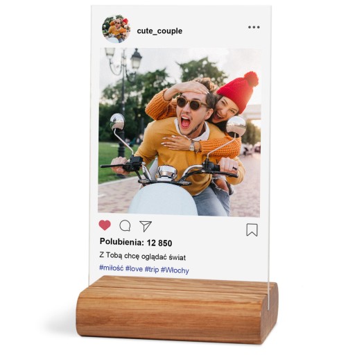 Personalizowana ramka z wydrukiem na szkle akrylowym (płyta plexi) to elegancka forma ramki ze zdjęciem w nowoczesnym stylu. Dodaj swoje zdjęcie, edytuj tekst szablonu z Instagrama lub Spotify i podaruj ukochanej osobie na prezent lub postaw na swoim biurku. Szkiełko z Twoim zdjęciem to idealny pomysł na prezent walentynkowy dla drugiej połówki.